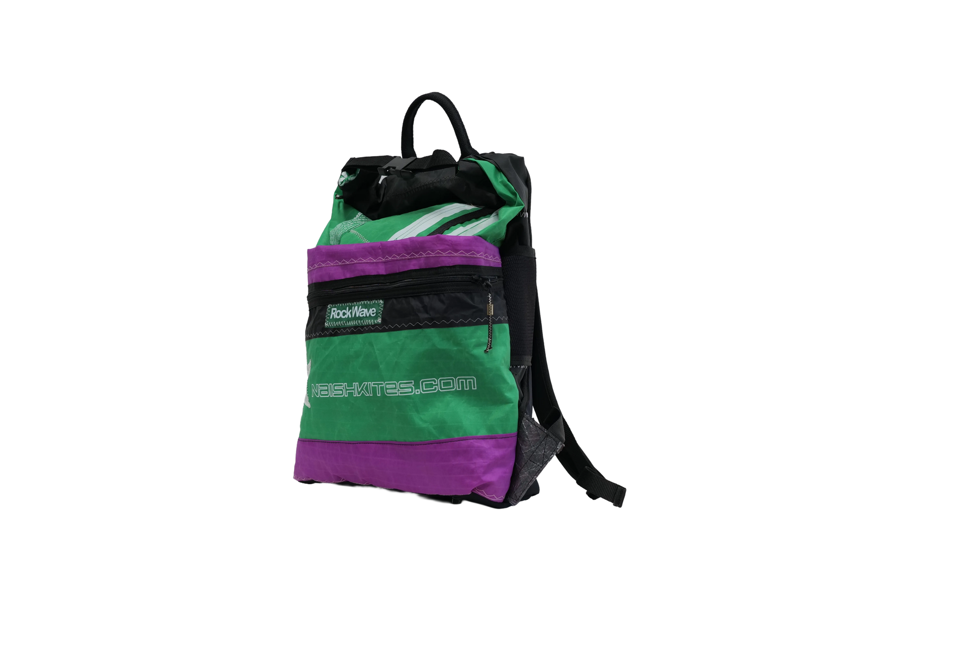 Zaino realizzato a mano in Italia con vele per kitesurf riciclate.